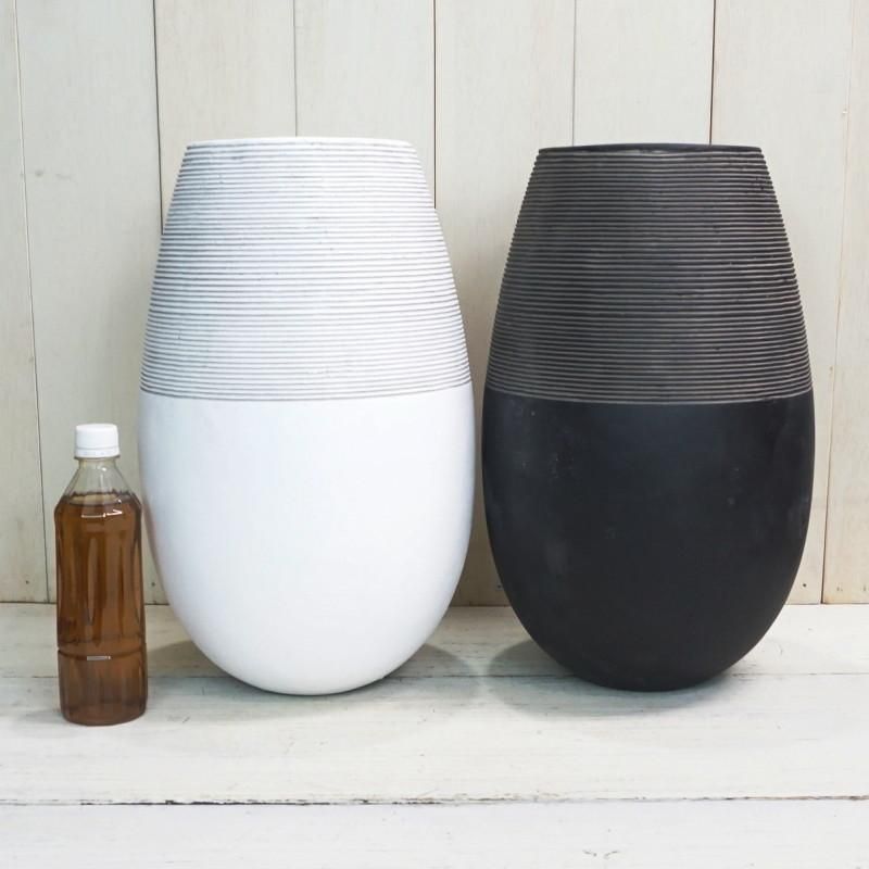 ![]() 上半分は細かいボーダーの彫り込みで、アンティークとモダンが融合したハイセンスな植木鉢です。材質はセメントに自然素材の繊維であるナチュラルファイバーが混合され、より丈夫なセメントポットが実現されています。表面の細かな凹凸もセメント製らしいより自然な風合いが感じられ、植物とよくマッチします。鉢の内側は簡易防水仕様となっております。 カラーはホワイト・ブラックの2色で、植物やお部屋・お庭の雰囲気に合わせてお選びいただけます。 ![]() サイズは、2種類をご用意。 【Sサイズ】外径:約26cm×高さ:約42(口径13)cm *こちらは【Sサイズ】の商品購入ページです。 【Lサイズ】外径:約38cm×高さ:約60(口径21)cm (【Lサイズ】の商品ページはこちら) *ご注意:セメント製品の特性上、気泡穴・型から取り外す際にできる角削れがございます。また、細かなキズ・汚れ・色ムラ・多少のぐらつき・使用環境により白華現象やクラック・色あせ等がある場合がございます。予めご理解の上、お買い求め下さい。 ご購入前の確認事項
