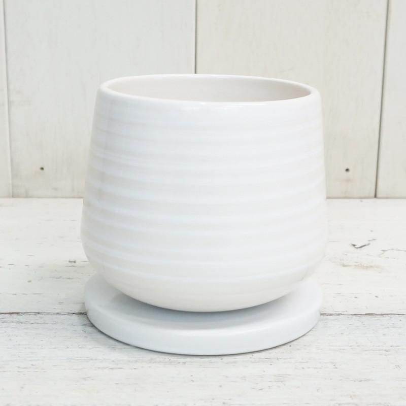 ![]() 表面にうっすらと入ったボーダー柄が大変上品な釉薬陶器鉢。品のある繊細な艶がとても美しく、高級感抜群です!和でも洋でも植える植物を選びません。 植木鉢の質感と一体化されたピッタリサイズの受け皿が付属しております。(鉢底穴あり)*受け皿は完全防水ではありません。 カラーはホワイト・グレー(ブラック)の2色で、植物やお部屋・お庭の雰囲気に合わせてお選びいただけます。 ![]() サイズは、2種類をご用意。 【Sサイズ】外径:約10.5(口径8.5)cm×高さ:約11cm *こちらは【Sサイズ】の商品購入ページです。 【Mサイズ】外径:約13(口径12)cm×高さ:約14cm (【Mサイズ】の商品ページはこちら) *ご注意:細かなキズや汚れ・くぼみ・色ムラ・カケ・付着物、多少のぐらつき、底穴付近の焼きヒビ等がある場合がございます。また、陶器鉢の性質上、模様・色味・サイズには若干の個体差が生じます。予めご理解の上、お買い求め下さい。 ご購入前の確認事項